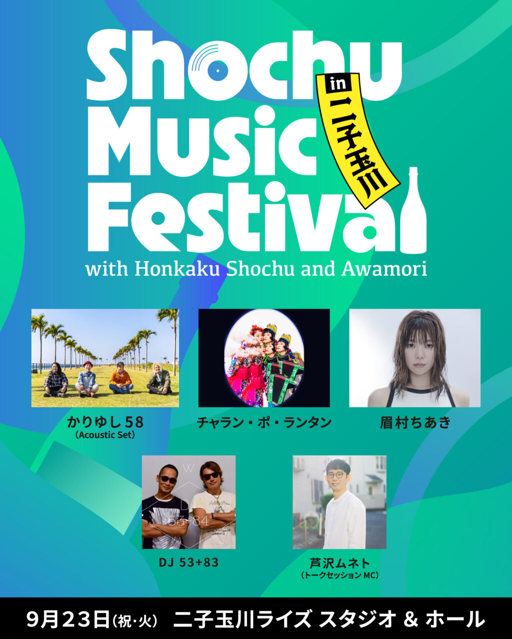 9/23(火•祝)“本格焼酎・泡盛×音楽を楽しめるフェス”「SHOCHU MUSIC FESTIVAL」出演決定!!