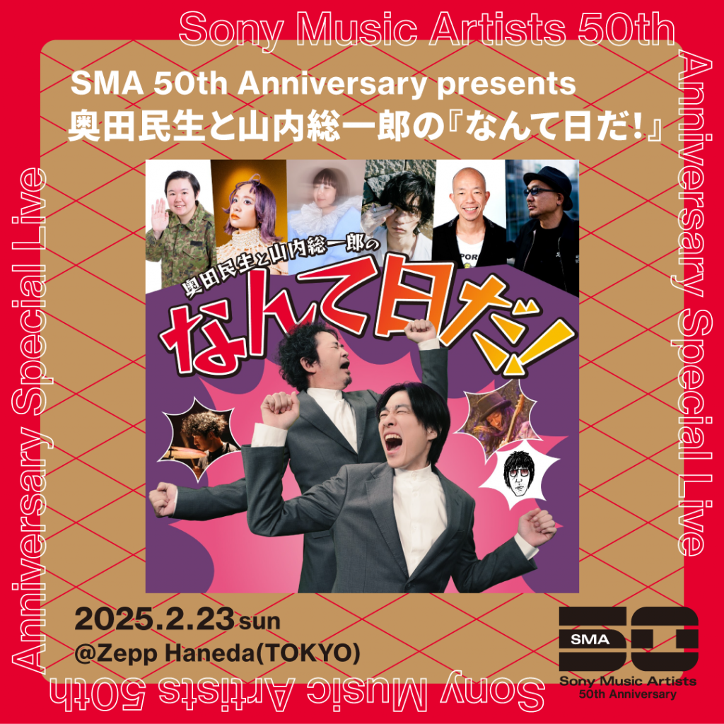 SMA50周年イベント「奥田民生と山内総一郎の『なんて日だ!』」にもも出演決定!!